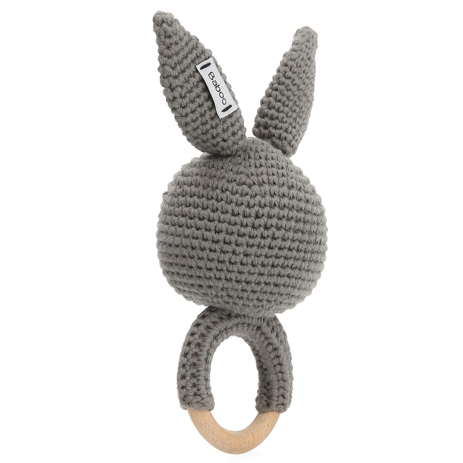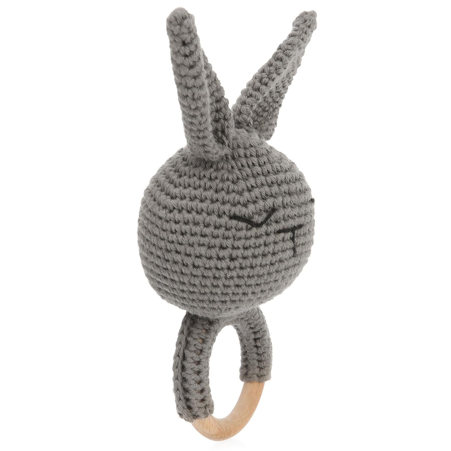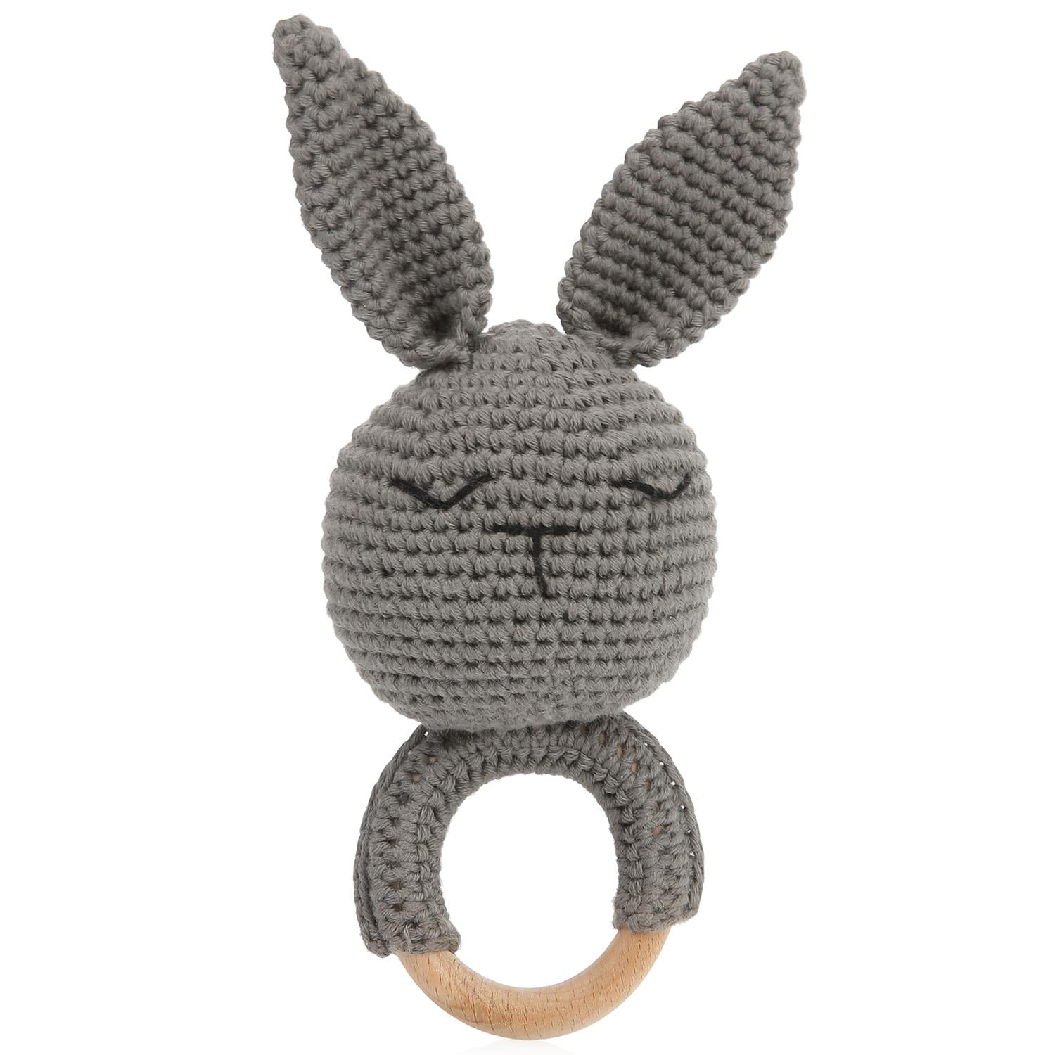 خشخيشة محبوكة من القطن العضوي على شكل أرنب حلقي