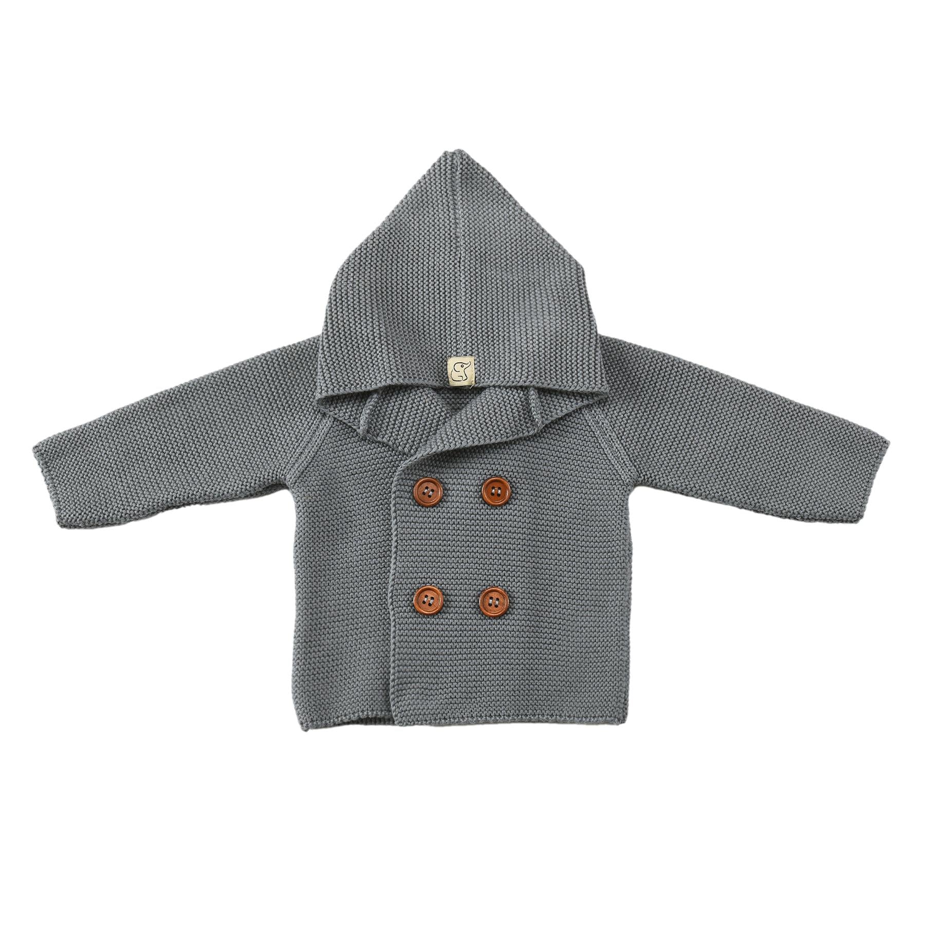 سترة صوفية للأطفال والرضع من القطن العضوي ذات غطاء مزدوج الصدر باللون الرمادي
