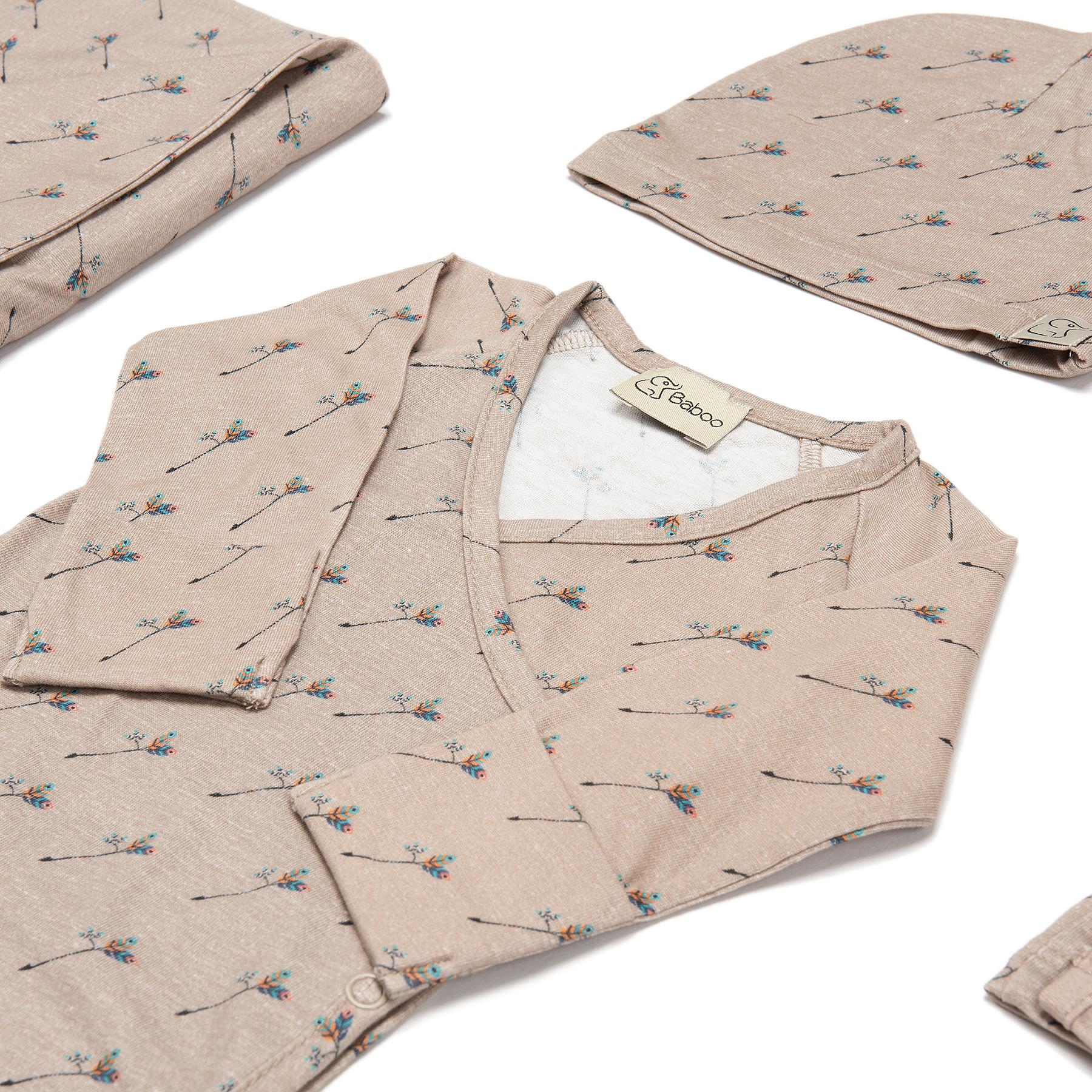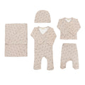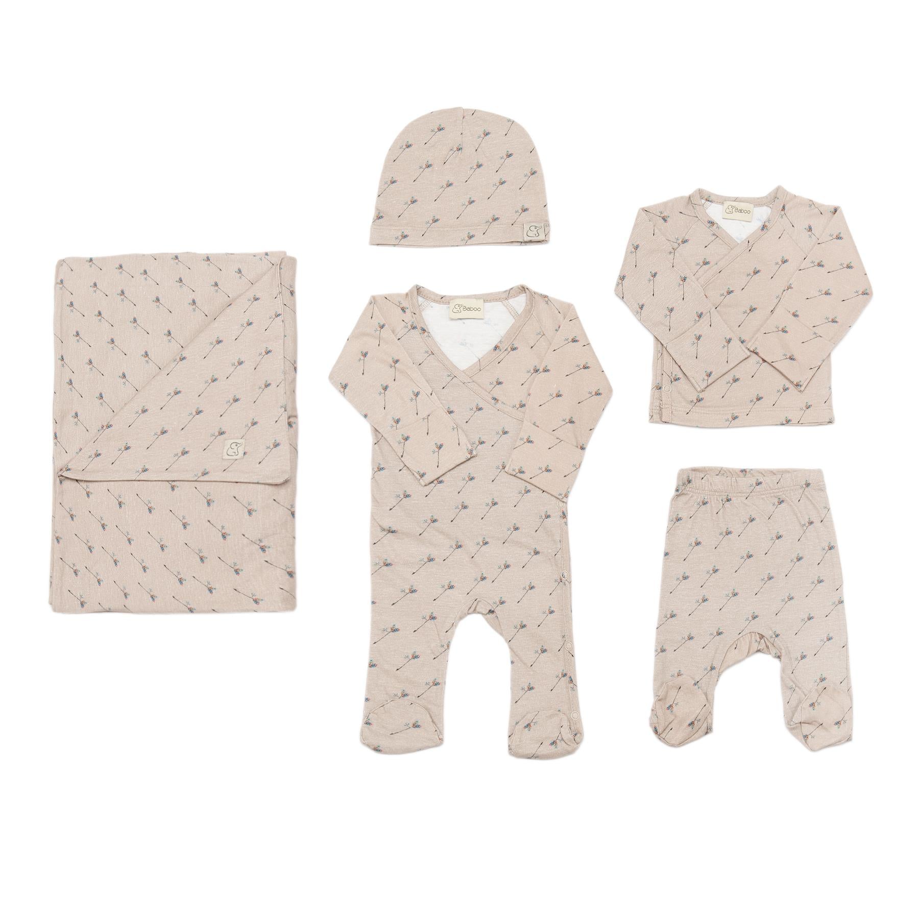 مجموعة من 5 قطع من القطن العضوي المنقوش لحديثي الولادة باللون البني