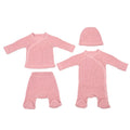 مجموعة من القطن العضوي لحديثي الولادة مكونة من 4 قطع تم إصدارها من المستشفى باللون الوردي