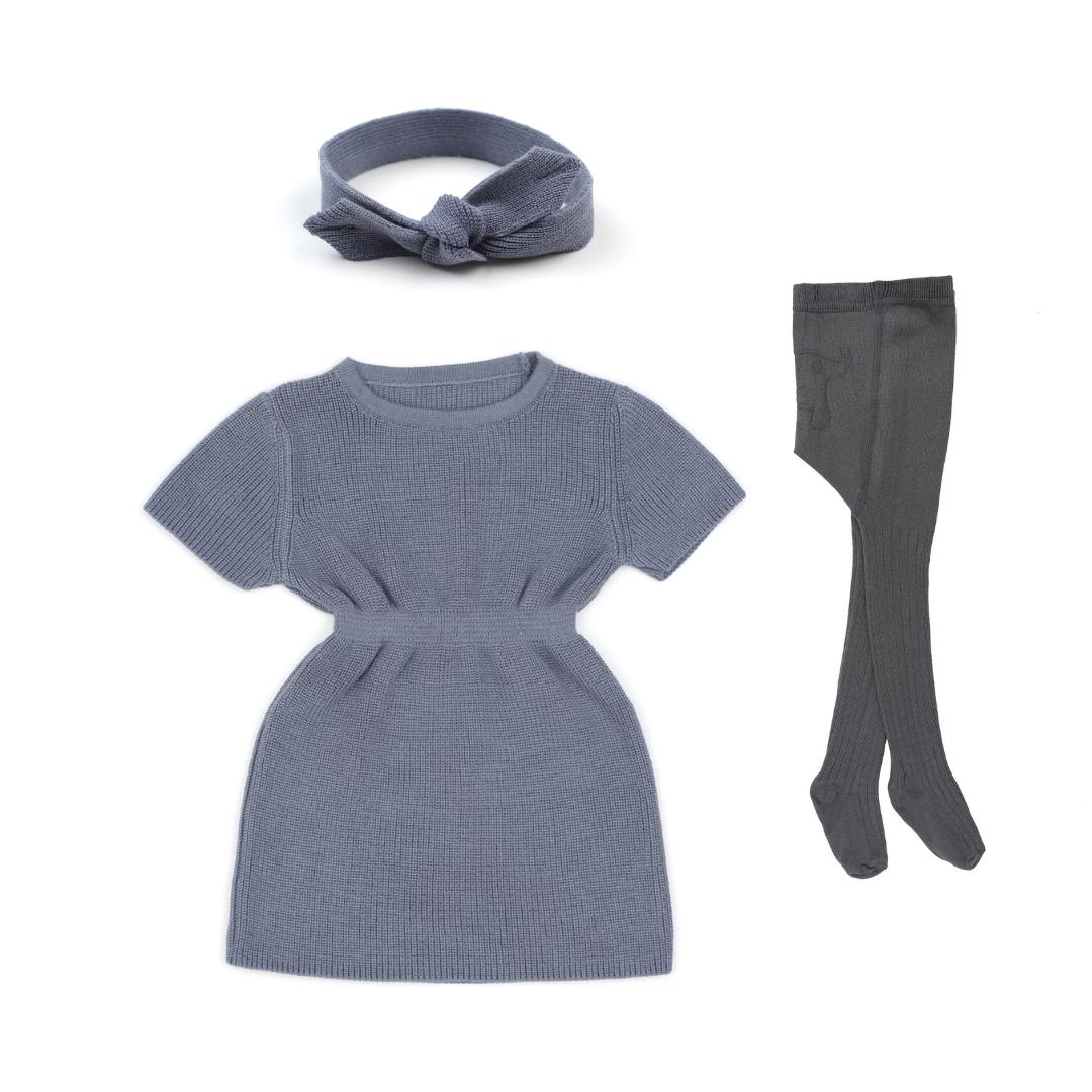 Organik Pamuk Bebek ve Çocuk Örgü Elbise Gri
