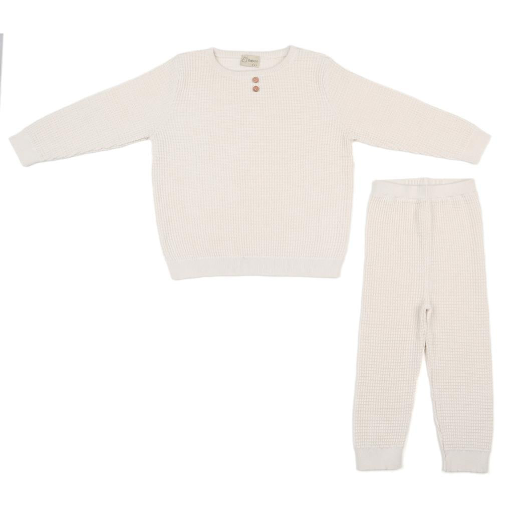 Waffle Organic Cotton Child Top-Bottom Set Cream