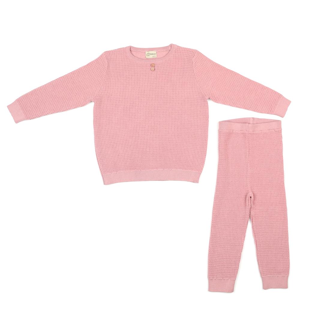 Waffle Organic Cotton Children's Top-Bottom Set Pink