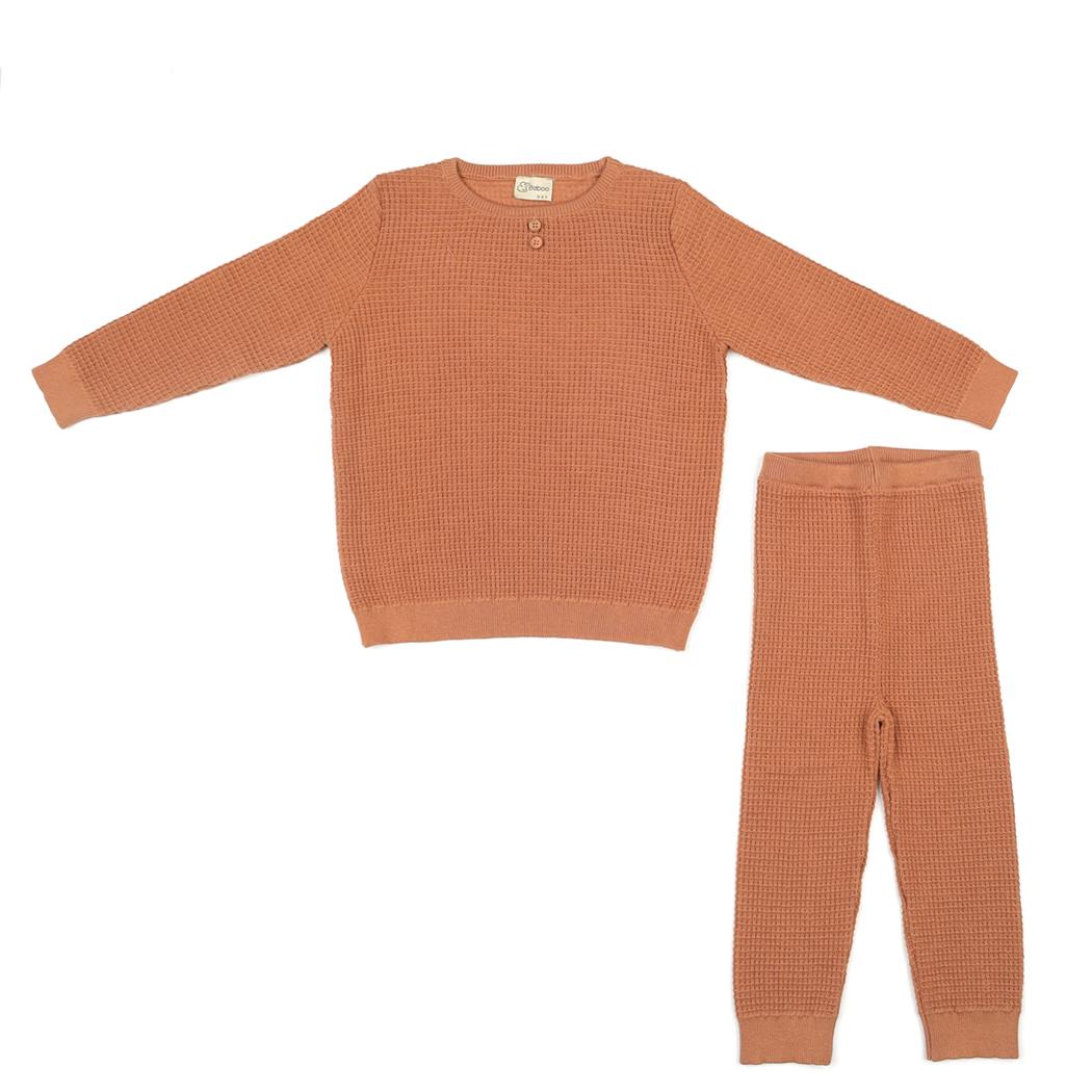 Waffle Organic Cotton Children's Bottom-Top Set Brown