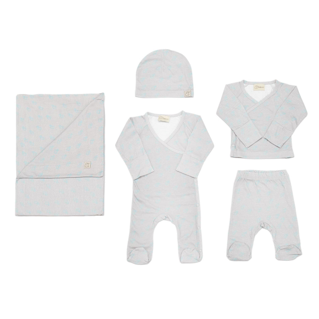 Newborn Patterned Organic Cotton Hospital Release Set of 5 Gray