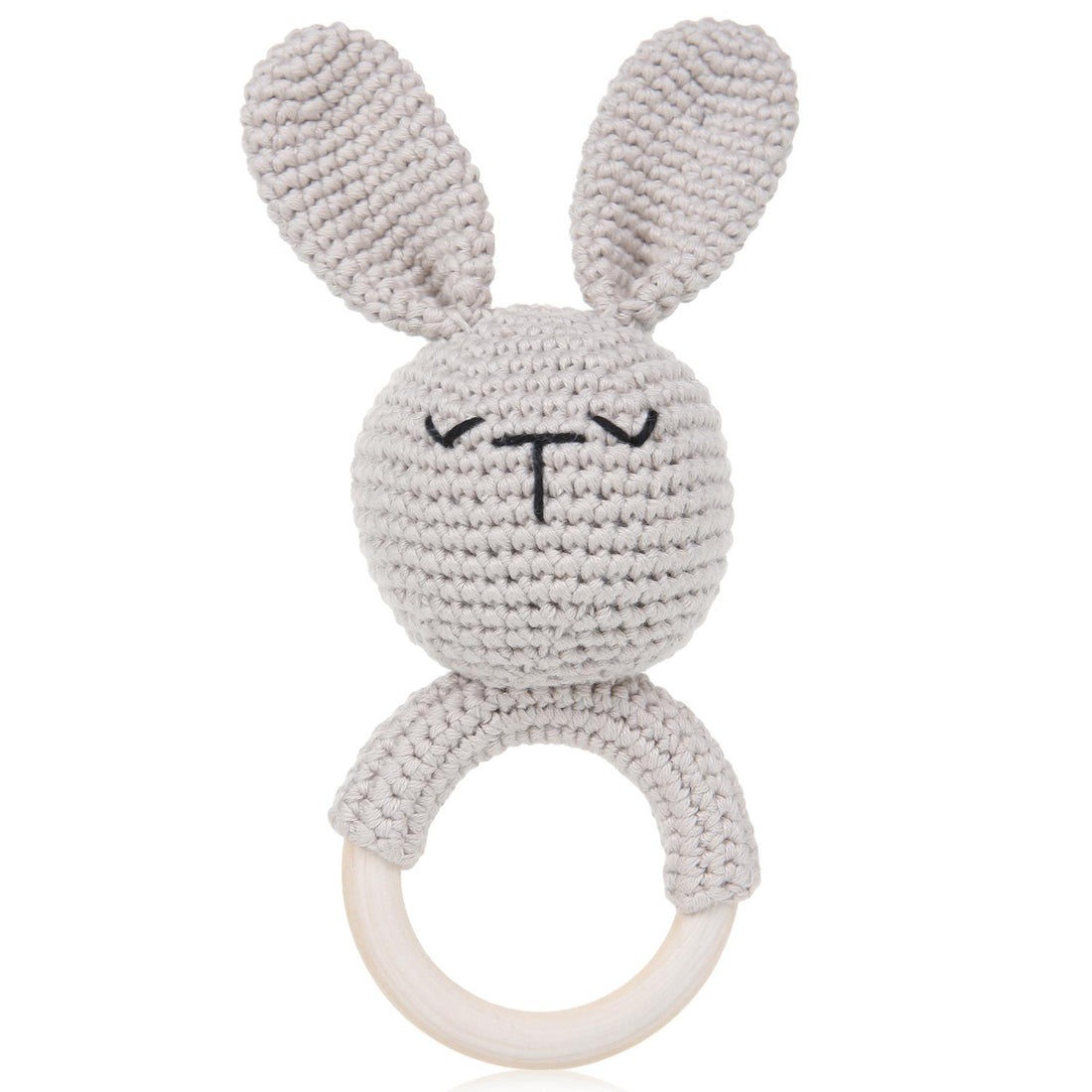 Ring Rabbit Organic Cotton Knitted Rattle Gray