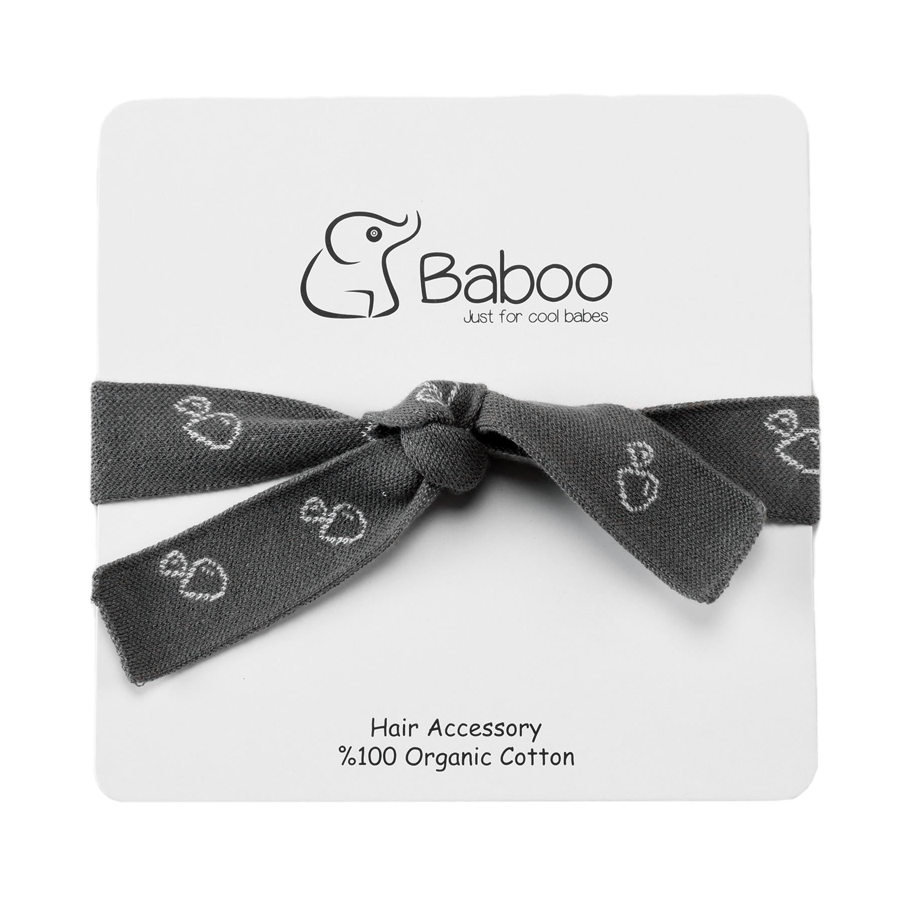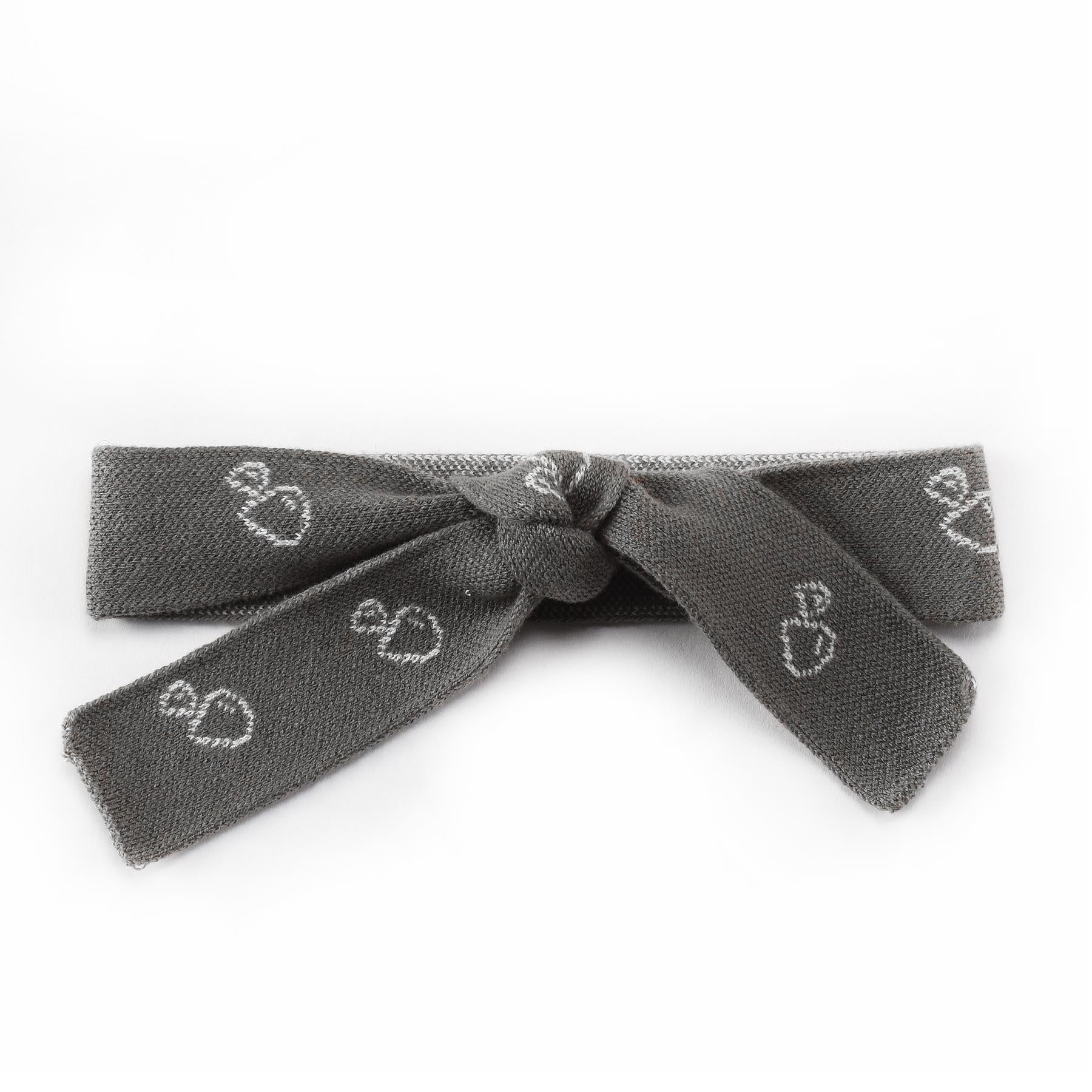 Desenli Organik Pamuk Bebek ve Çocuk Örgü Saç Bandı Gri