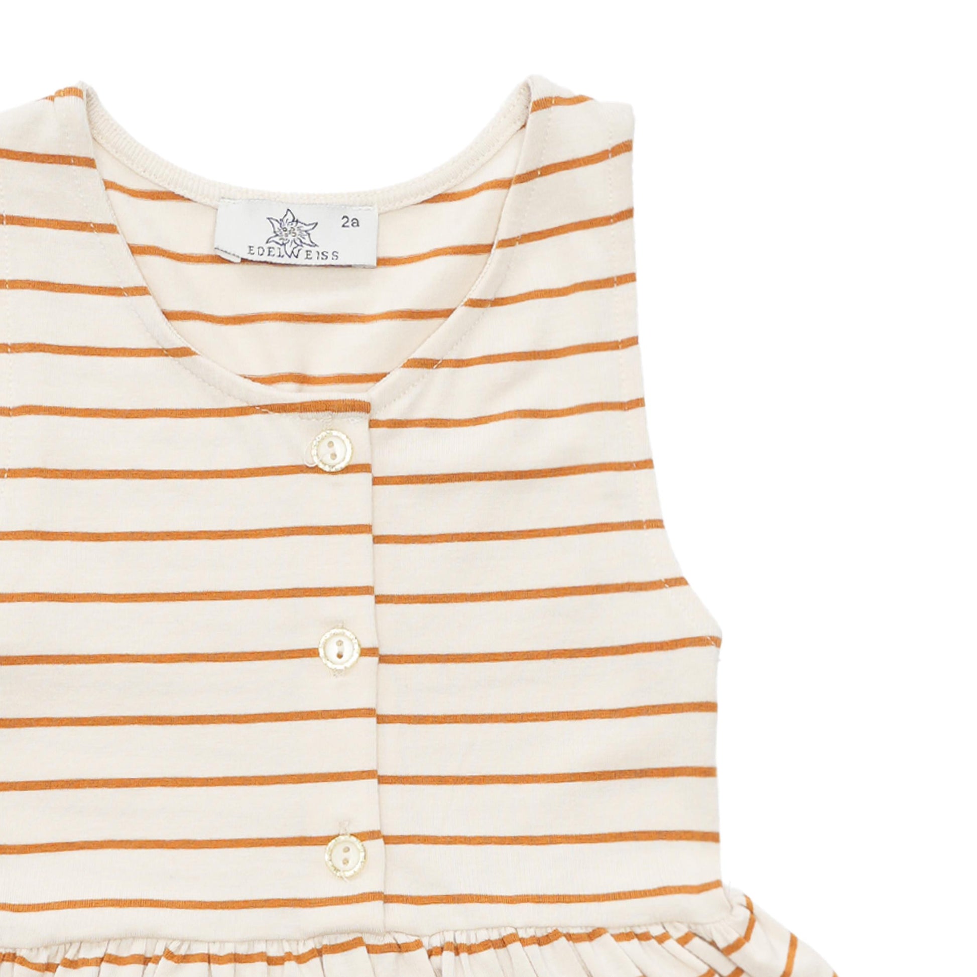 Edel Weiss Modal Kumaş Yazlık Baharlık Kız Bebek Çocuk Kolsuz Elbise Çizgili Bej