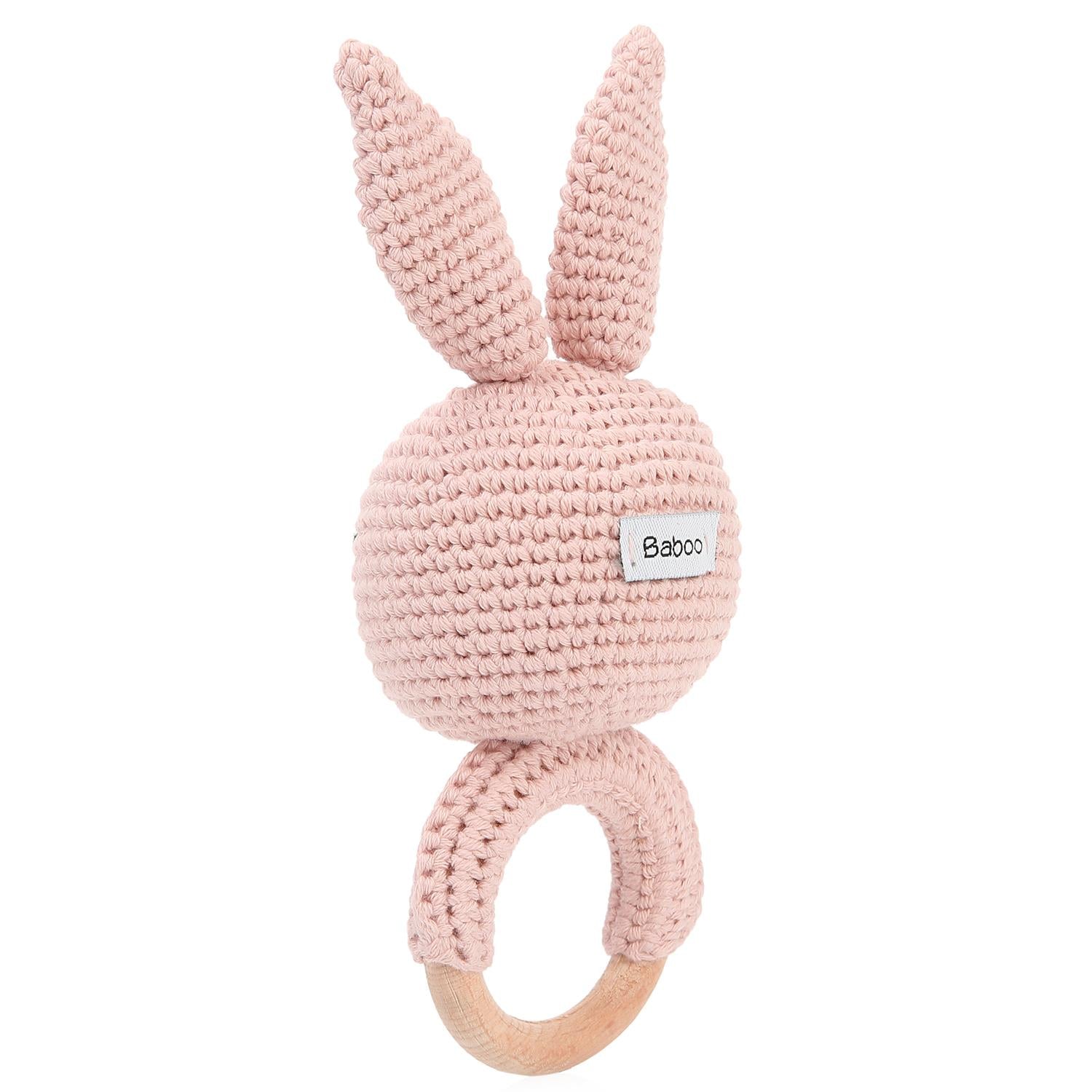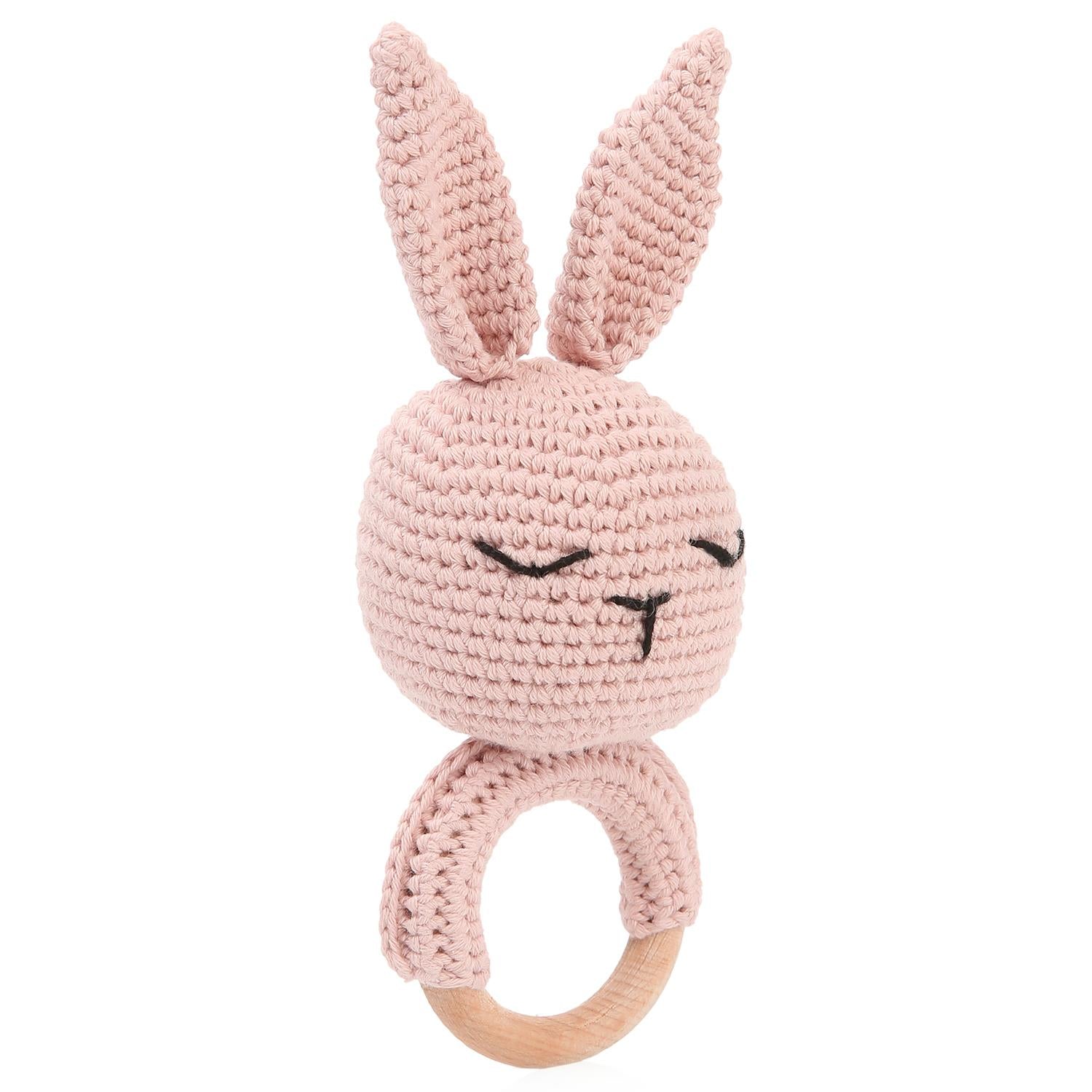 Halkalı Tavşan Organik Pamuk Örgü Çıngırak Pembe
