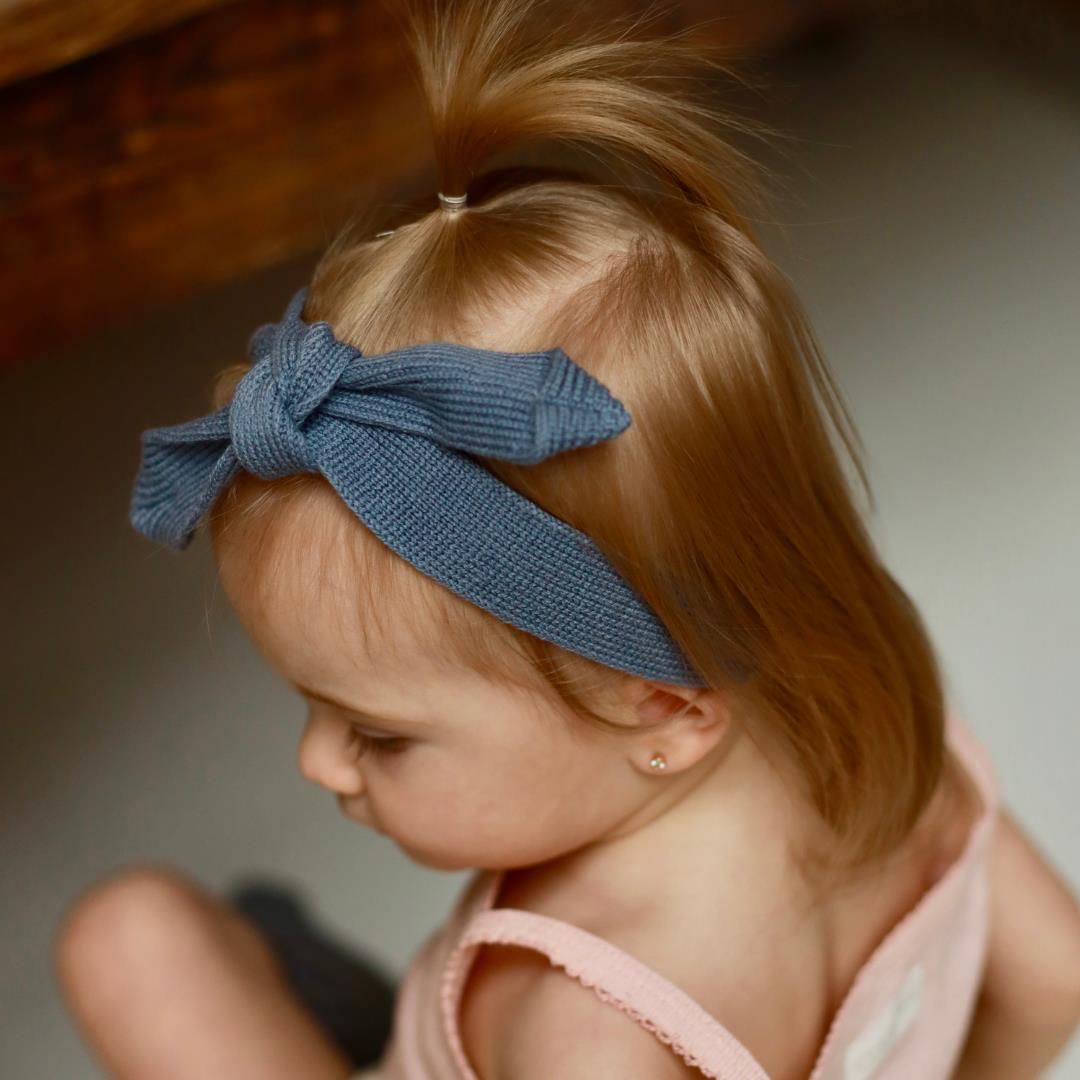 Organik Pamuk Bebek ve Çocuk Örgü Saç Bandı Mavi